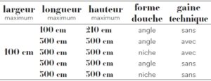 - Choix de la paroi de douche