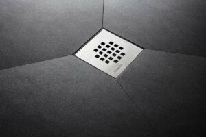 Ce receveur à quatre versants offre une circulation optimale de l’eau. Un style intemporel grâce à ses lignes douces et sa grille inox carrée.